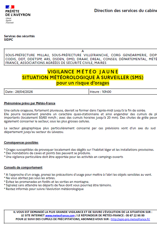 #VigilanceMétéo #Orages #Sécurité #Aveyron